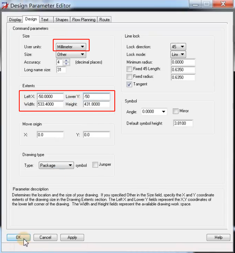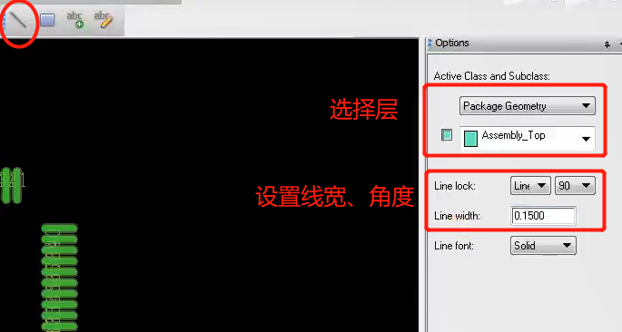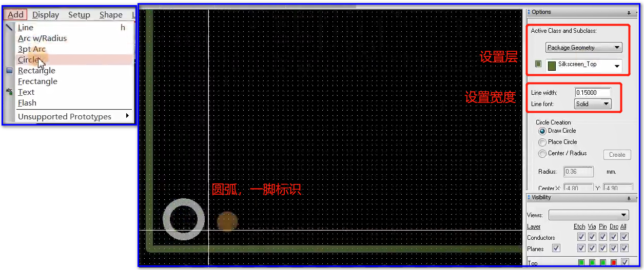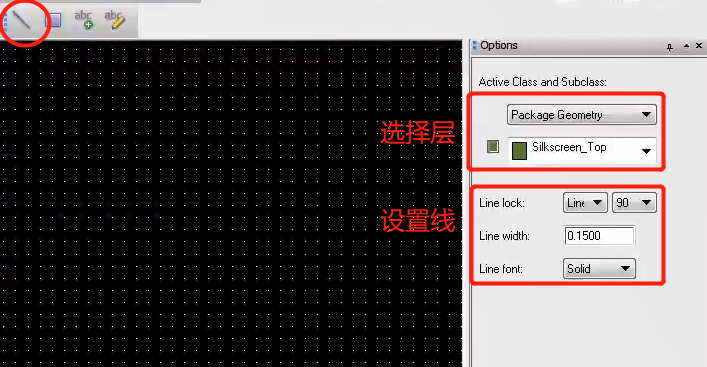 Options中外框选择Package Geometry和 Silkscreen_Top,同样可以输入坐标精准定位。