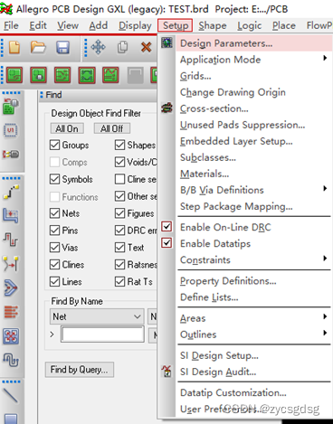 导入网表之后我们一般要把我们常用的各种参数导入进去,这个我们上上一步已经分享过了,这个参数包含的内容有我们设计的尺寸,栅格点相关,颜色相关, 光 绘相关(有些概念暂时不理解也不用急)。