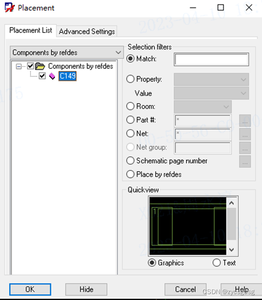 点击如图所示选项,在弹出的窗口中勾选这个C149,然后这个元器件就沾到你的鼠标上面了。然后你随意放置一个位置后,点击OK即可。