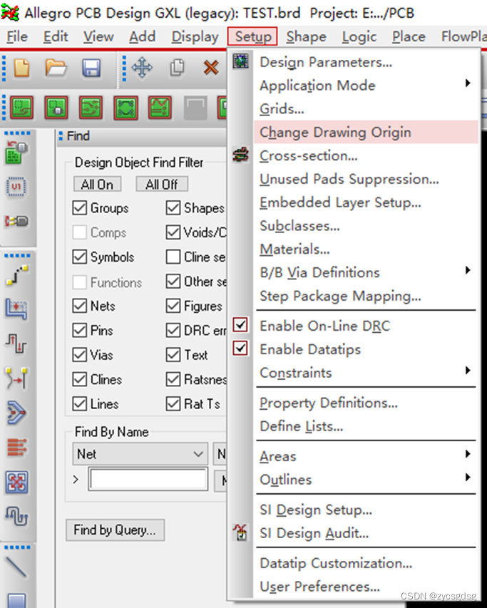 点击如图所示快捷图标可以打开和关闭栅格点,我们导入网表和参数后一般要先定位好原点,点击如图所示选项。