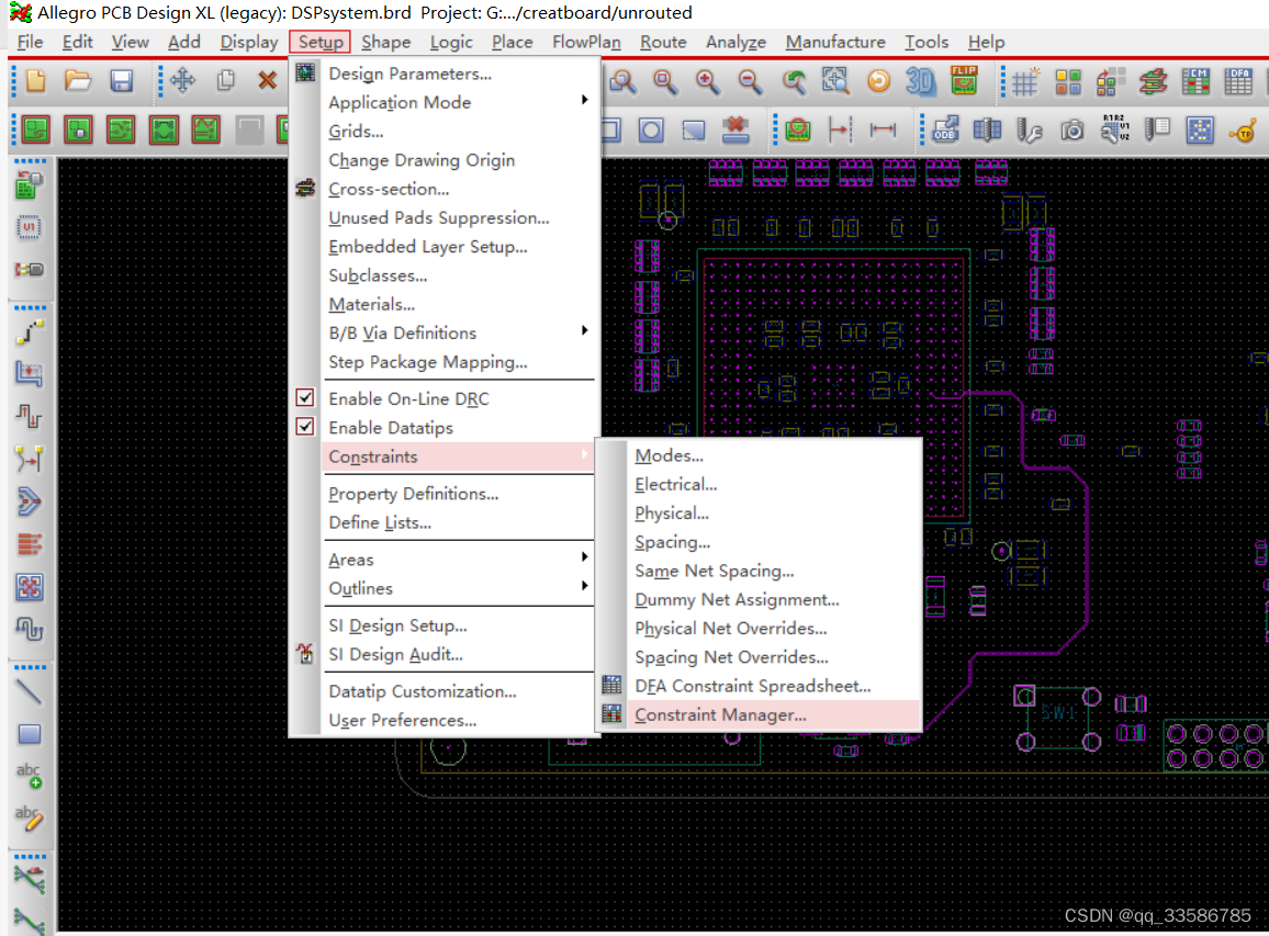 使用PCB Editor 打开 PCB工程文件 ,setup-constrains-constrains manager
