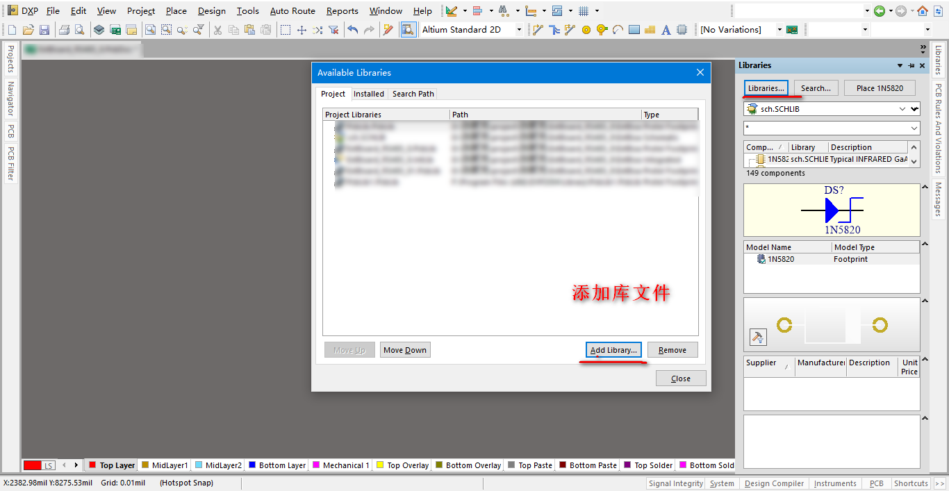 使用PCB->>PCB library查看PCB上的所有元件封装
