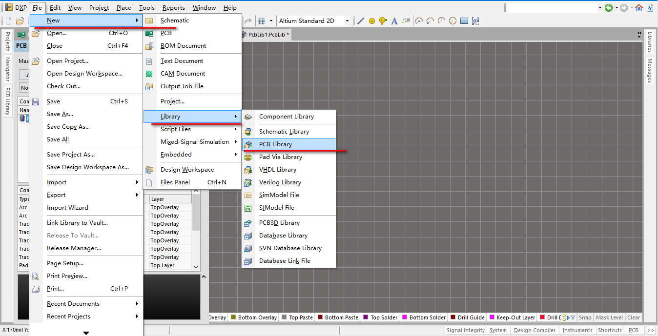 当然你也可以新建一个封装库File->>New->>library->>PCB library