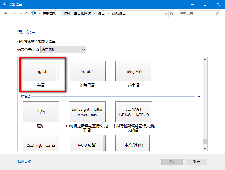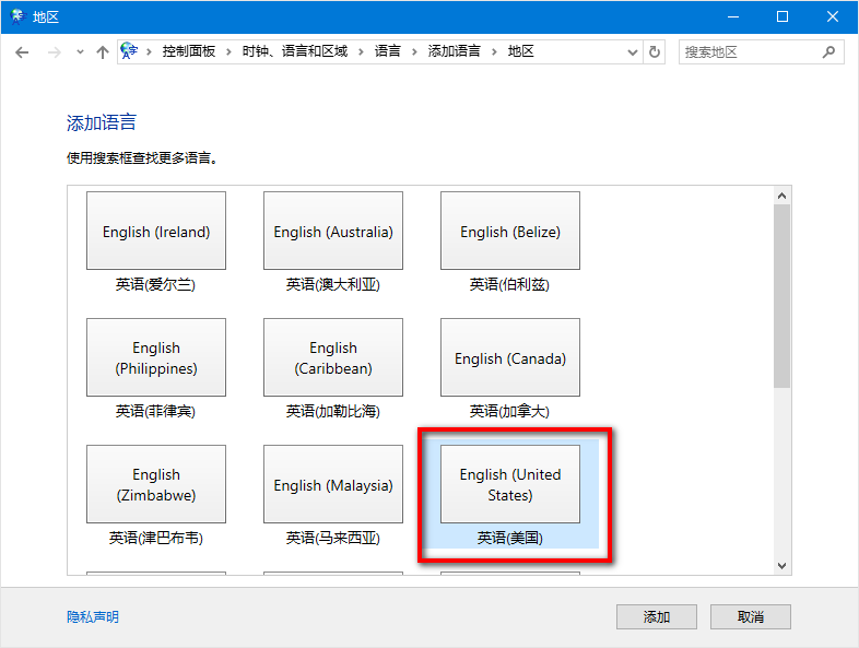 选择 英语->>英语(美国),双击,添加完成。当布线的时候切换成美式键盘输入法即可。
