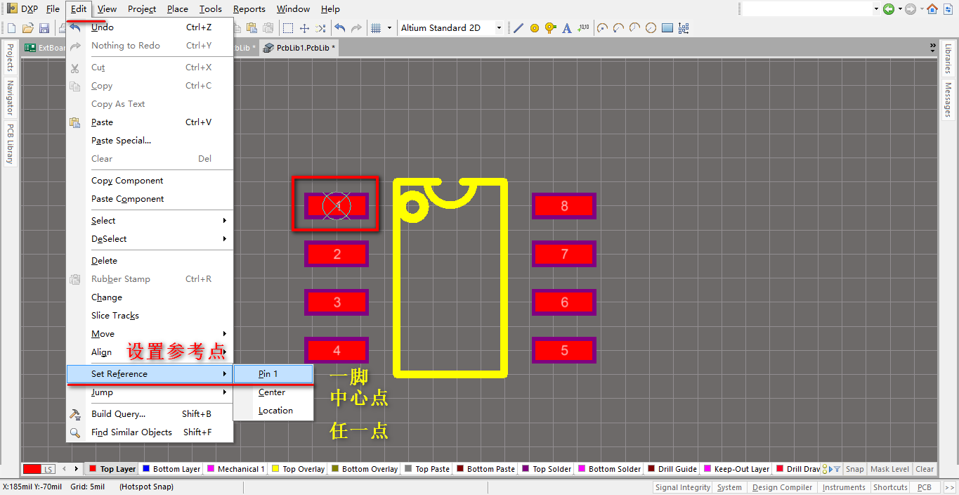 将你需要的PCB封装拷贝,需要注意的是需要设置参考点Edit->>set Reference->>Pin 1