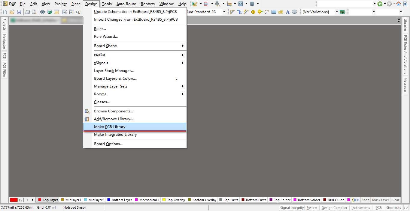 打开一个PCB,点击Desigen->>make PCB library,生成封装库文件XXX.pcblib*