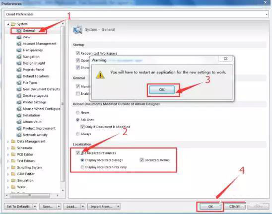 17.选择“General”,再选择“Use localized resources”,点击“OK”,再点击“OK”,关闭程序,再重新打开程序即可 汉化 完成。