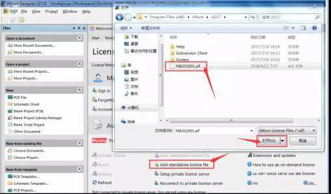 14.点击“Add standalone license file”,在软件的安装目录下找到“NB201601.alf”文件,选择文件,点击“打开”。