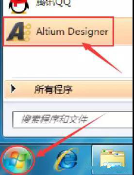 12.在开始 菜单栏 中找到Altium Designer软件,然后打开。