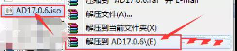 1.右击“AD17.0.6.iso”文件,点击“解压到AD17.0.6”。