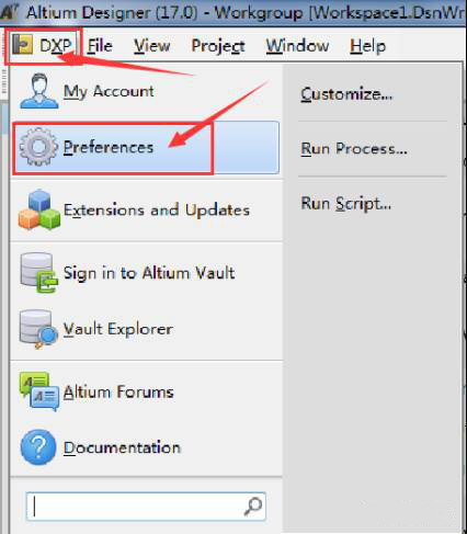 16.点击“DXP”,再点击“Preferences”。