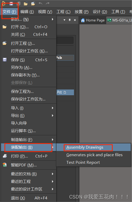 1.点击文件(F),再点击装配输出(B)中Assembly Drawings。