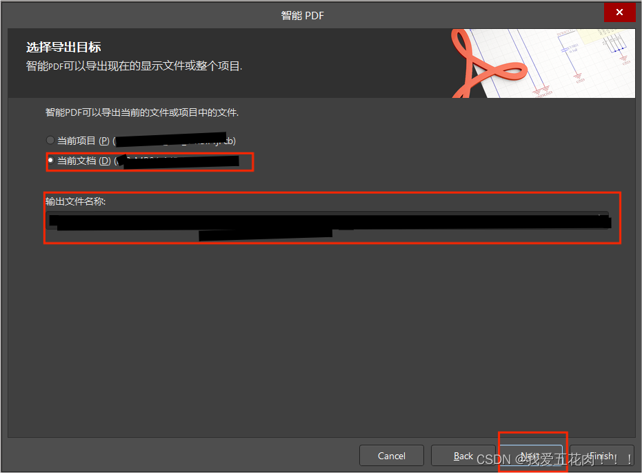 3.选择当前 文档 ,文件存放位置自行设置,再点击下一步