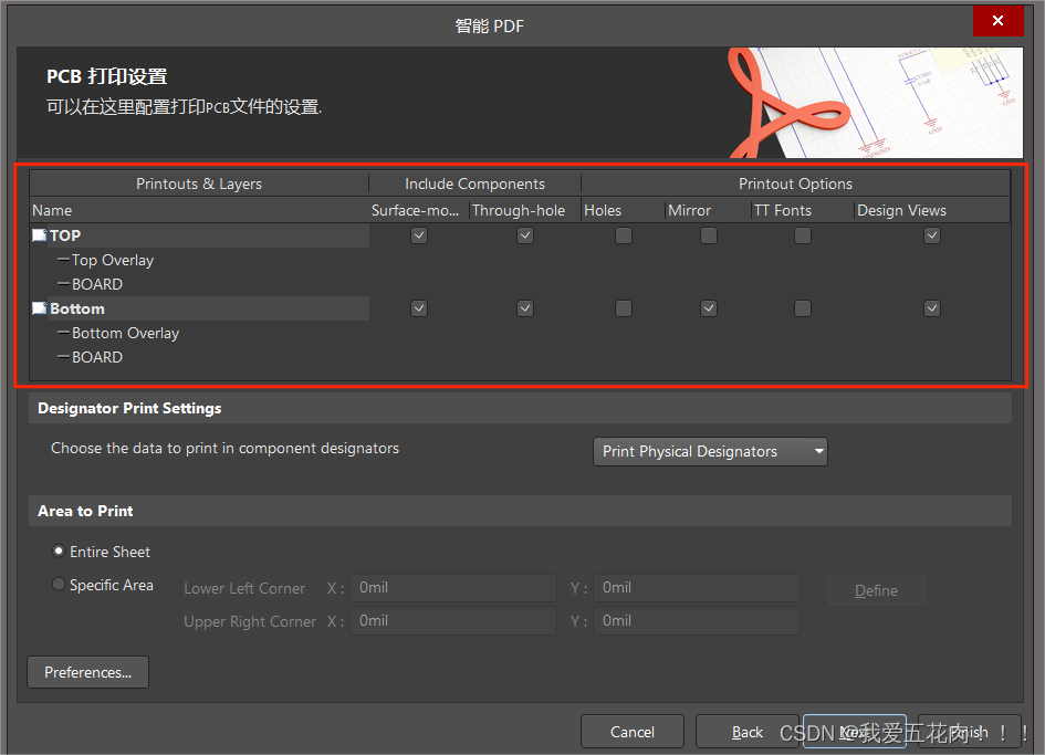 5.只留丝印层和边框层,其它默认不变,再点击下一步,一定注意底层要镜像。