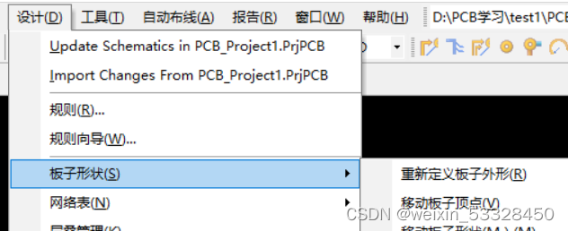 点击设计——板子形状——重新定义板子外形