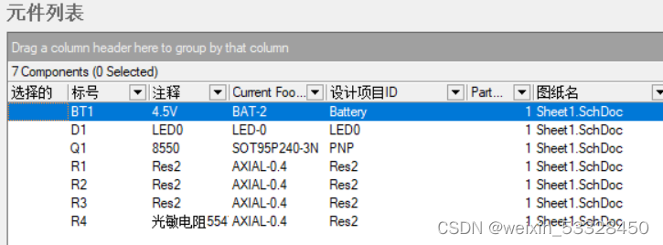 元件列表显示当前原理图中所有的元件