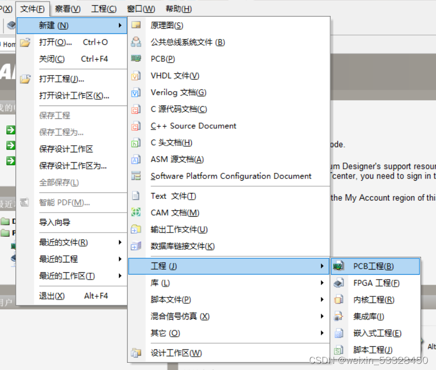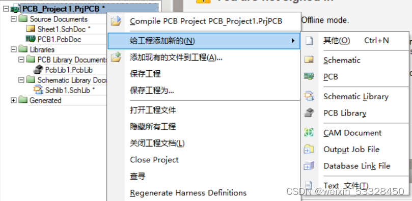 打开AD软件后新建一个Projects工程文件,并可以选择在此工程 文件夹 下添加不同的文件