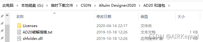 1、打开AD2020和谐包,拷贝 shfolder.dll 到 Altium Designer 20的安装目录下,该目录应该包含文件“X2.EXE”。