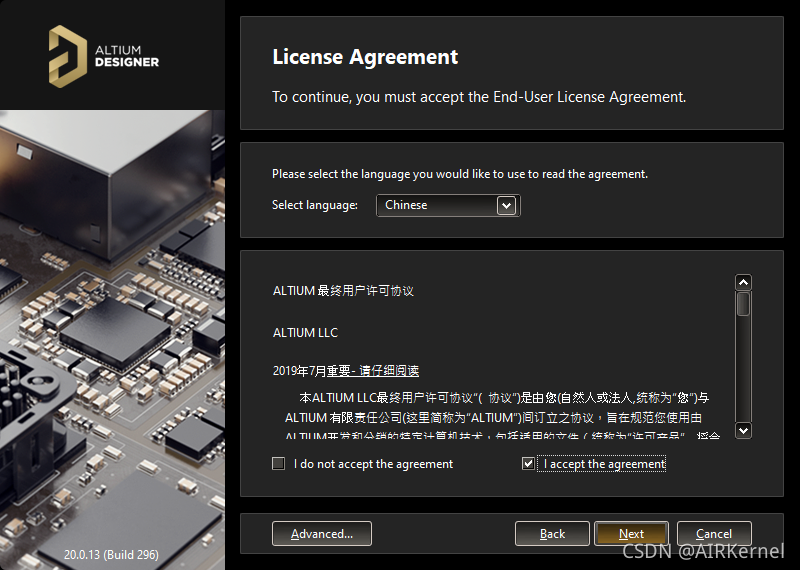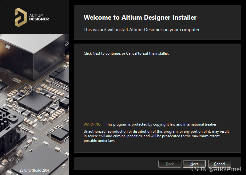 解压后,运行 AltiumDesigner20Setup.exe,进入安装程序。