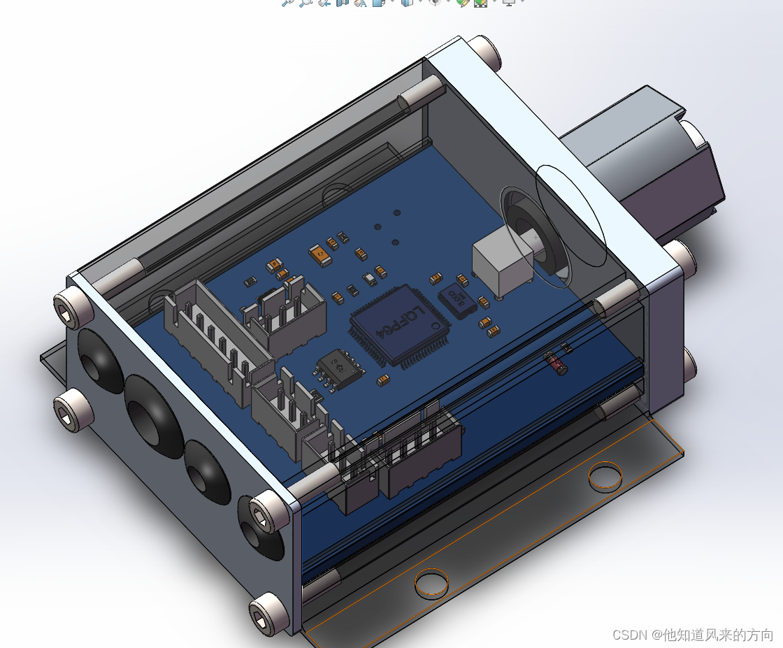 对于产品的三维模型设计中,电路板的放置及接插件是否干涉等都比较重要,可以通过将AD三维模型直接导出成通用三维模型,然后用三维建模软件打开直接加入到对应装配体即可。