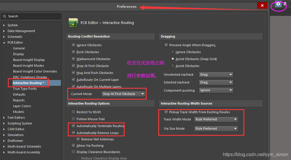 (作用由:a.确认启用了“自动终止走线”和“自动删除循环”; b.确认交互式走线宽度/过孔大小源选项都设置为规则优)