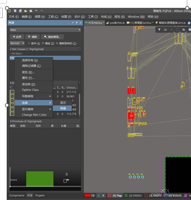 可将创建的电源类的网络全部隐藏,方便布局。