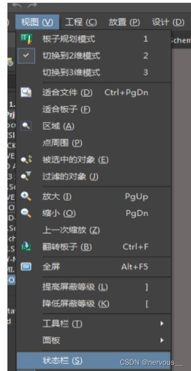 视图 ->状态栏中,可以在右下角显示Panels,点击Panels->PCB
