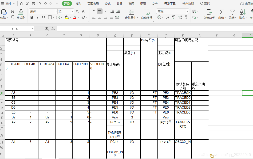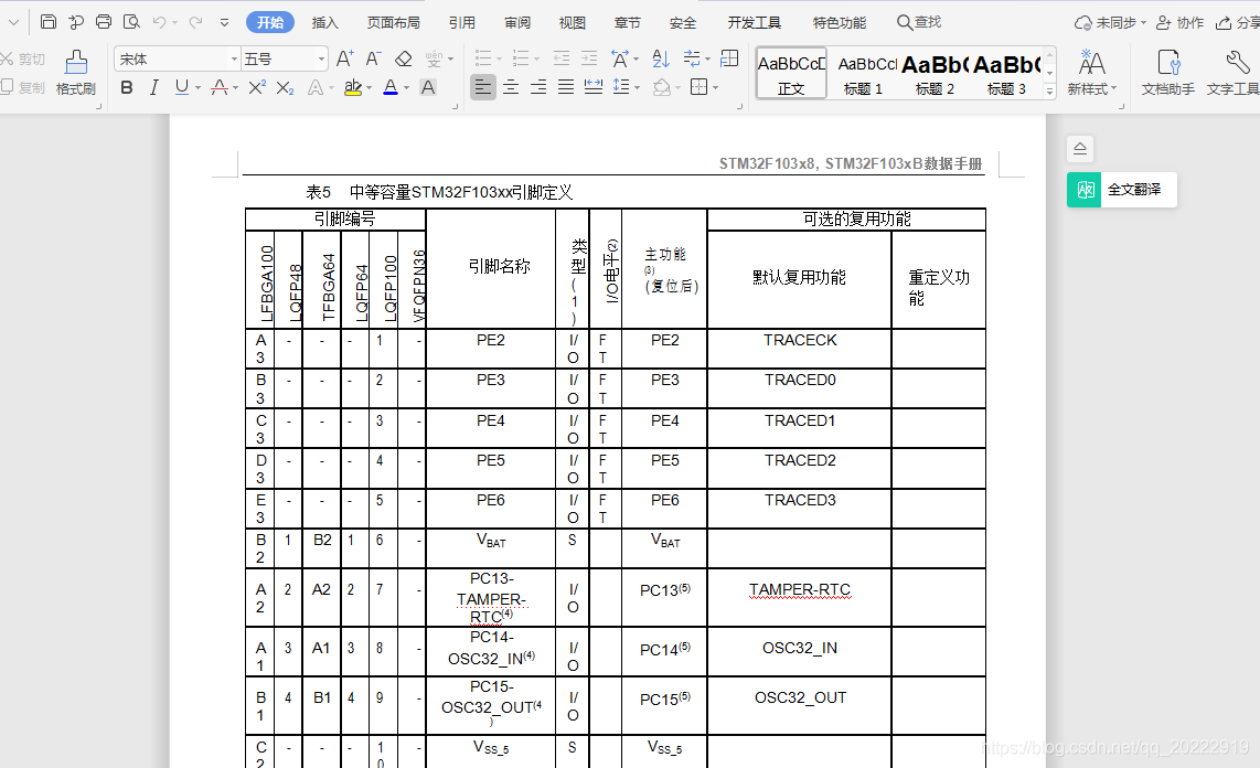主要用到的数据有三列,引脚编号、主功能、默认复用功能。首先要将表格中的这三列数据复制出来,由于官方文档大多数是PDF格式,要先将PDF转换成word格式。