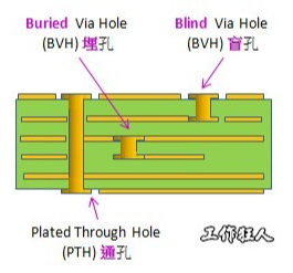 * 埋孔(BURIED VIA):未延伸到印制板表面的一种导通孔。