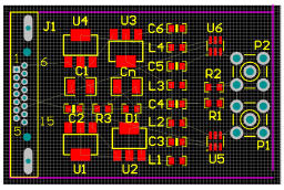 网络密度分析是利用AD系统方提供过的密度分析工具,对当前PCB文件的元器件放置及其连接情况进行分析。密度分析会生成一个临时的密度指示图(Density Map),覆盖在原PCB图上面。在PCB图中,绿色的部分表示网络密度较低,元器件越密集、连线越多的区域颜色会呈现一定的变化趋势,红色表示网络密度较高的区域。密度指示图显示了PCB布局的密度特征,可以作为各区域内部布线难度和布通率的指示信息。用户根据密度提示图进行相应的布局调整,有利于提高自动布线的布通率,降低布线难度。