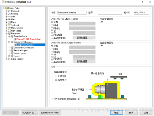 单击“Component Clearance”规则选项下面的子规则,即可在对话框的右边打开对话框。