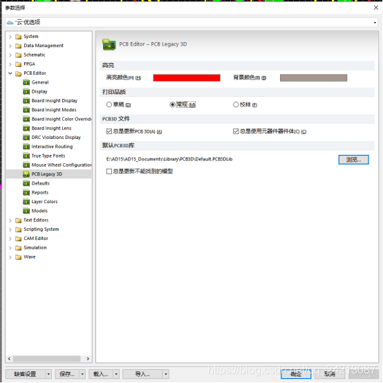 4. “默认 PCB 3D库”选项组