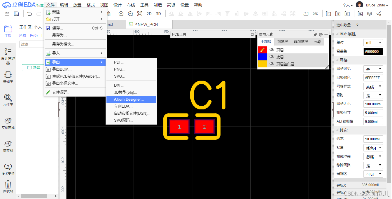 原理图采用相似的操作,不再赘述。然后在AD中打开