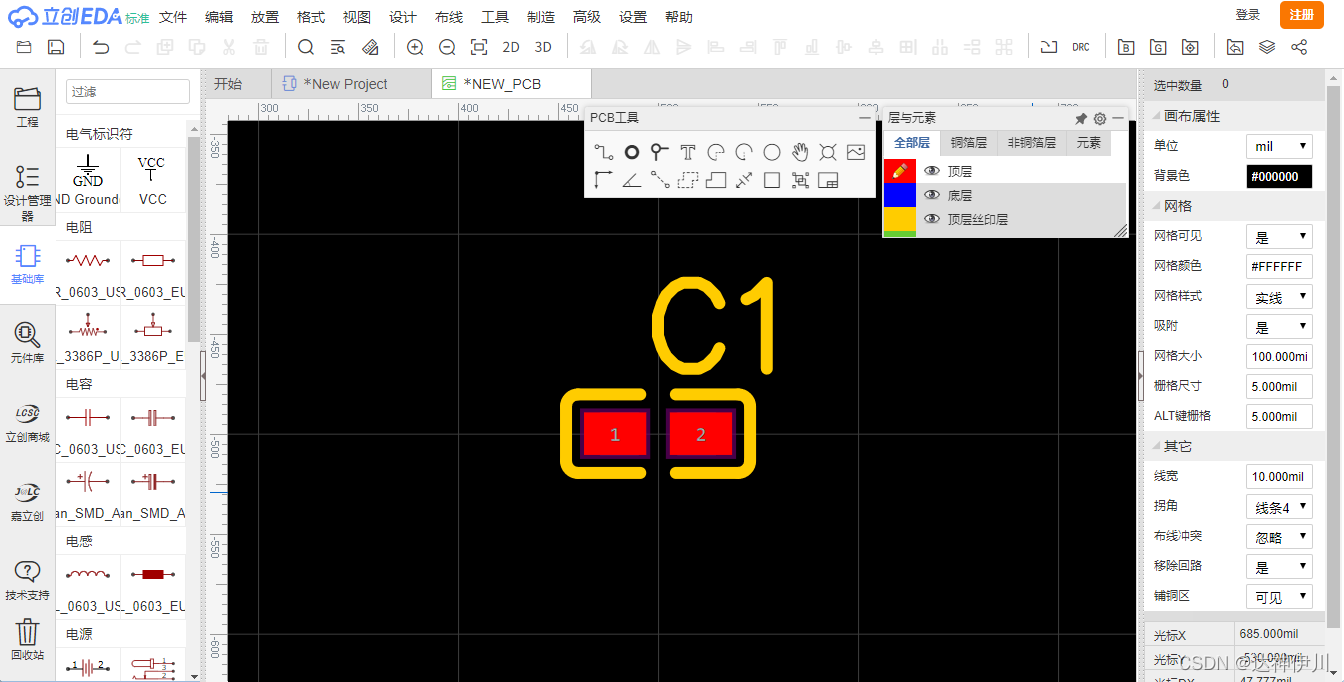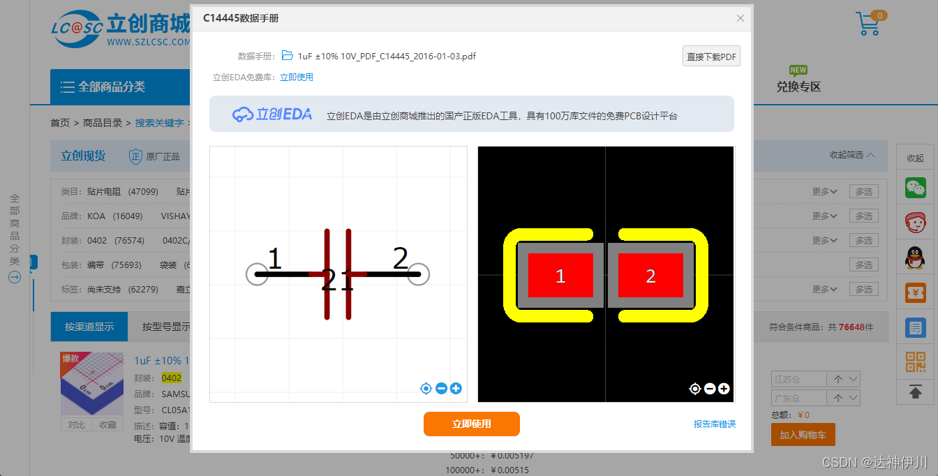点击立即使用,新出来一个立创EDA界面,能看见封装图