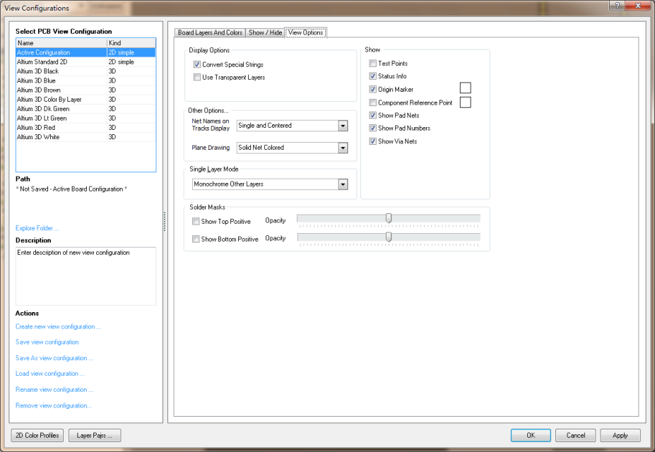 再在 PCB 编辑界面下点层按【Shift+S 】 ,将弹出 View Configurations /Show/Hide (属性)设置对话框,并单击 Display 标签,将出现 Display 选项卡如【图32】 所示。