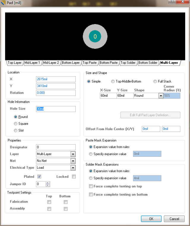oPullback :用于设置内层铜膜和 过孔 铜膜不相交时的缩进值,这里取默认值。同样的,对另一个内层的属性指定为: