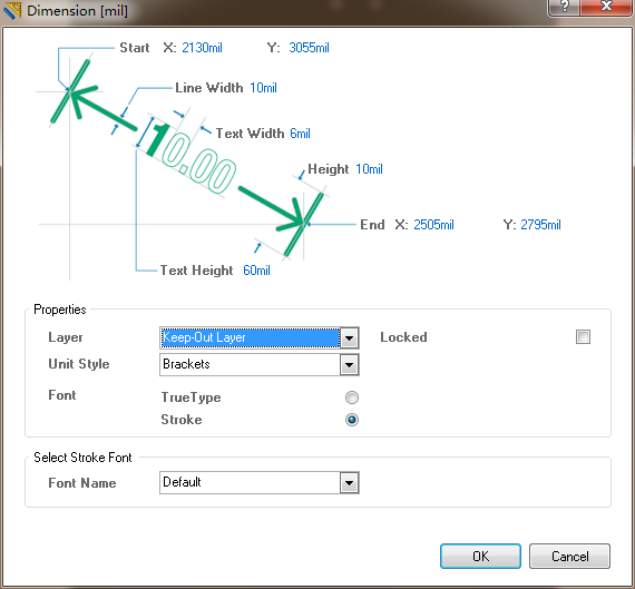 ·在用鼠标放置距离标注时按 Tab 键,将弹出 Dimension (距离标注属性)设置对话框,如【图5】 所示。