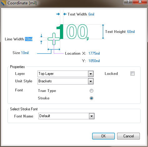 ·Locked 复选项:用于设置是否将坐标指示文字在 PCB 上锁定。