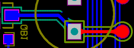 ·Surround Pads With 复选项:用于设置敷铜环绕焊盘的方式。有两种方式可供选择: Arcs (圆周环绕)方式和 Octagons (八角形环绕)方式。两种环绕方式分别如【图10】 和【图11】 所示。