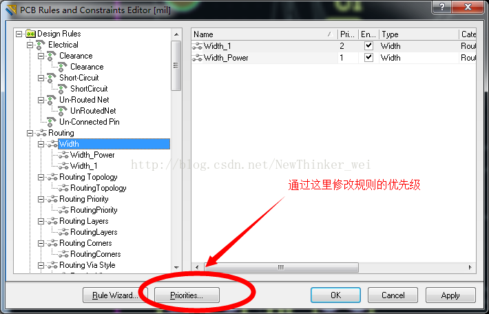 Routing –> Width:设定线宽。