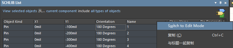 5.在SCHLIB List的Name上右键选择 Switch to Edit Mode,进入编辑模式。