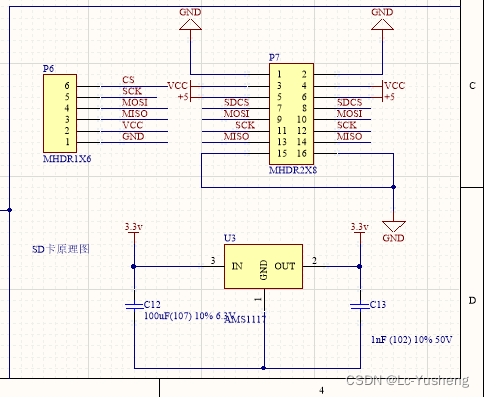 由于我这个包没有直接附带的有SD卡的模块,所以根据SD卡的原理图,理由多个拼凑出SD卡的原理图。