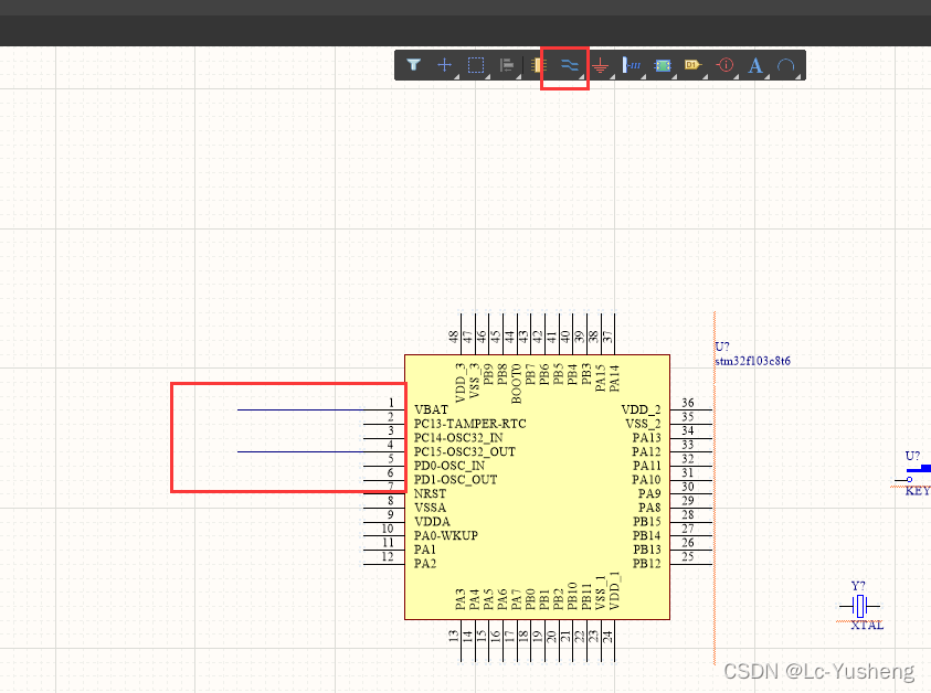(1)、延长管脚(左键在起始和终点各点击一下即可连接,右键释放掉)