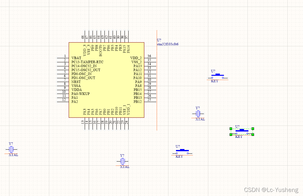 经过上面的步骤,应该掌握了基本的绘制方法,按照如下原理图绘制即可。