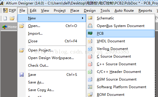 1.File->new->PCB :本方法创建的 PCB文件 没有对PCB文件的相关属性(图纸大小等)进行设置