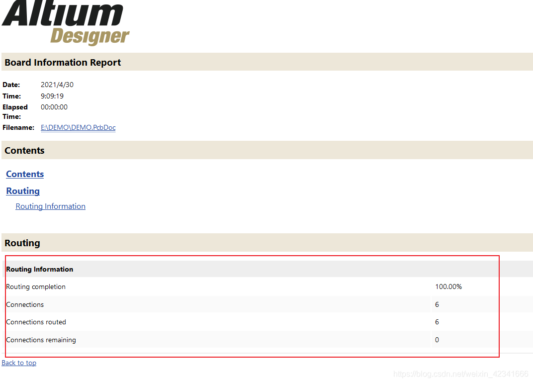依次点击工具栏的Reports—>Board Information,就会显示板子信息,点击Report,就会显示布线的完整情况,这个时候如果显示100%,就可以进行下一步工作了,如果不是100%,可以再利用上一步的功能检查还有哪些漏线。