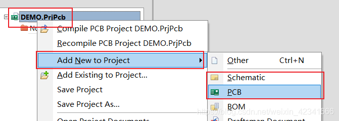 右键工程名字,分别添加原理图和PCB。