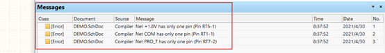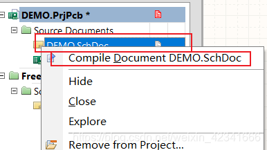 右键原理图名称处,点击编译原理图。这一点和写程序是一样的,如果原理图中有不合理的地方,软件会给出具体 信息 。用户可以根据提示仔细检查原理图是否合理,有的错误以根据实际情况忽略。