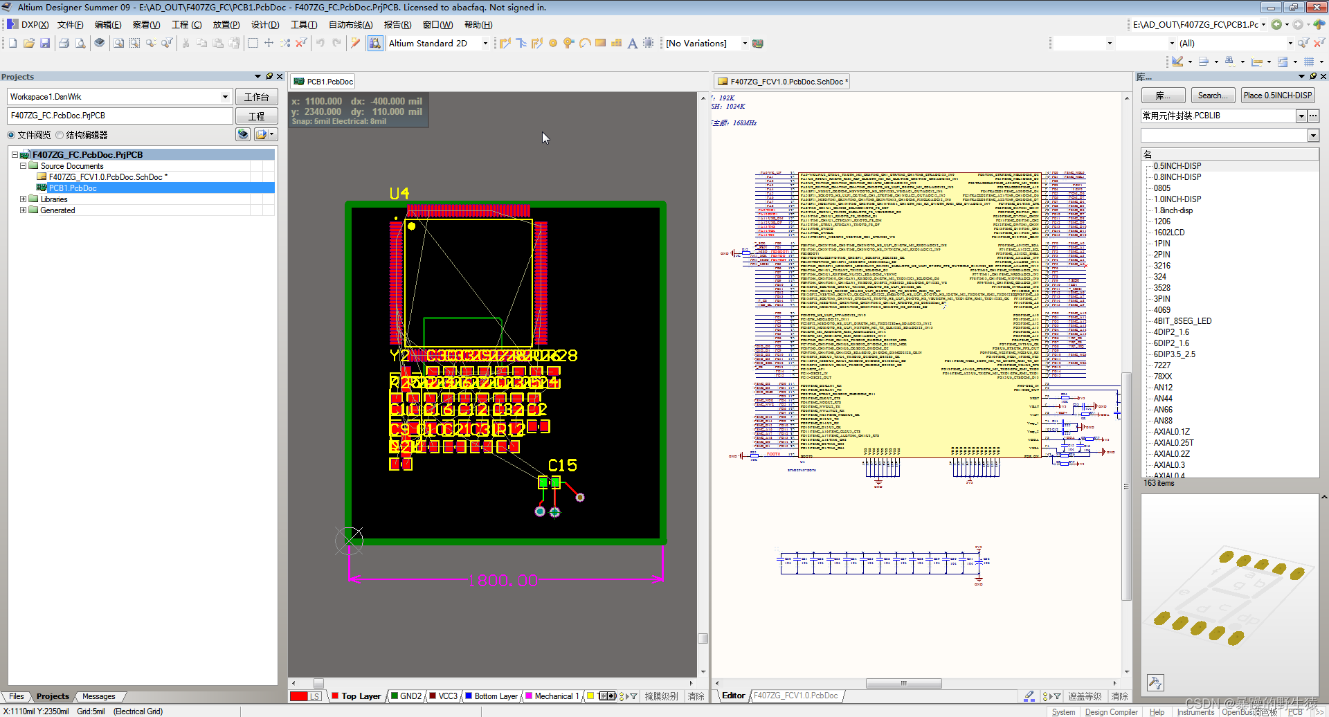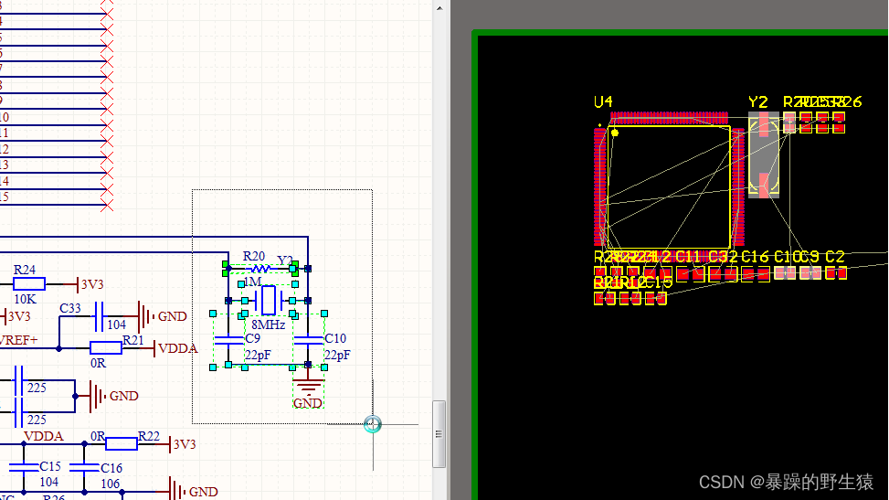 示例:我们在原理图中用鼠标框选一组元件,那么PCB中的对应元件也会被选中,如下图:
