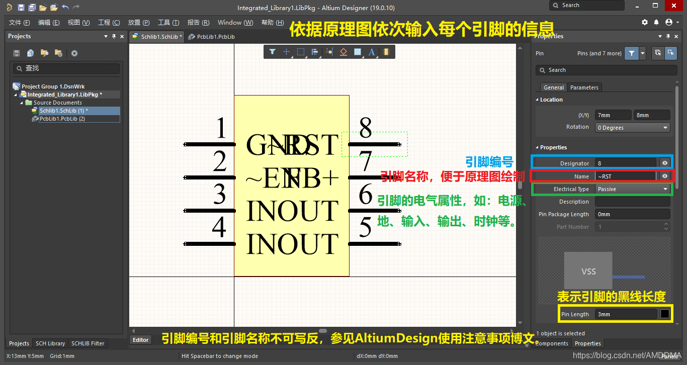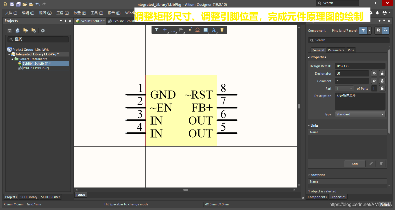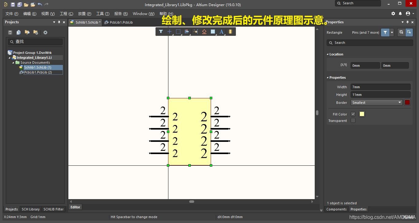 至此,原理图库绘制完成,接下一章绘制元件的PCB库。